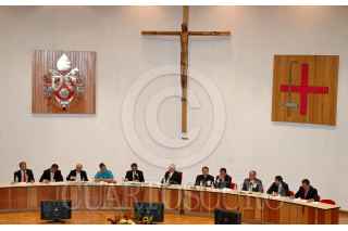 CUAUTITLAN IZCALLI, ESTADO DE MÉXICO, 22ABRIL2009.- En las instalaciones de la Conferencia del Episcopado Méxicano se realizo una reunión con los dirigentes de partidos políticos y con el consejero presidente del IFE, esto como parte de las actividades de su 87 Asamblea Plenaria. FOTO: RODOLFO ANGULO/CUARTOSCURO.COM