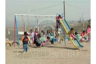 SAN VICENTE CHICOLOAPAN, EDO. DE MÉXICO, 23ABRIL2009.- Alumnos de la escuela de nivel preescolar "Niños Héroes", enclavada en lo alto de Loma de San Sebastián, permanecen en riesgo, dado que su centro escolar carece de servicios y barda perimetral. La institución cuenta con la clave CTT 15EJN4384D, a cargo de la supervisión escolar 09/J189. Las autoridades locales y educativas hacen caso omiso de las demandas de la población por la indefinición de límites de este municipio con Los Reyes La Paz. FOTO: MARIO NULO/CUARTOSCURO.COM