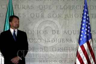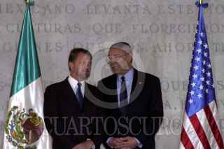 John Ashcroft, Procurador de Justicia de Estados Unidos (al centro) y Rafael Macedo de la Concha, Procurador General de la República de México (der.), durante la bienvenida oficial a la comitiva norteamericana que participara en la Reunión Binacional México-Estados Unidos, en el Muse de Antropología e Historia FOTO: Oswaldo Ramírez/CUARTOSCURO.COM