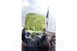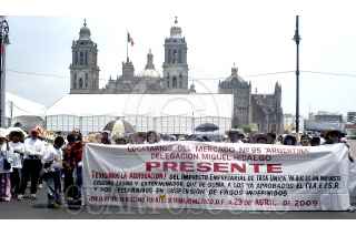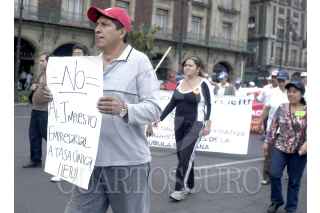 MÉXICO, D.F., 23ABRIL2009.- Tianguistas se manifestaron en las inmediaciones del zócalo capitalino en protesta por la aplicación del impuesto único que se les cobra a estos comerciantes. FOTO: LUIS CARBAYO/CUARTOSCURO.COM