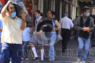 MÉXICO, D.F., 24ABRIL2009.- Debido a la contingencia Sanitaria a causa de una epidemia de influenza que se registra en estas entidades la cuál ha dejó 20 muertos en las primeras tres semanas de abril, por tal motivo los capitalinos salen a las calles usando cubrebocas para evitar algún tipo de contagio por el virus de la influenza. FOTO: SÁSHENKA GUTIÉRREZ/CUARTOSCURO.COM