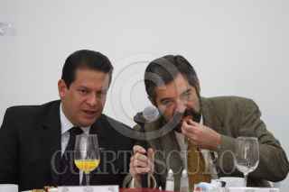 MÉXICO, D.F., 24ABRIL2009.- Jorge Carpizo McGregor y Jorge Carlos Díaz Cuervo, integrante del Partido Social Demócrata, durante el foro "Estado Laico", en Casa Lamm. FOTO: MOISÉS PABLO/CUARTOSCURO.COM
