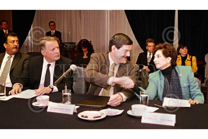 Francisco Barrios Terrazas, Secretario de la Contraloria y Desarrollo Administrativo, Leticia Navarro, secretaria de Turismo, durante la firma de convenio de Colaboración entre Transparencia Mexicana y el Consejo de Promoción Turistica de México. FOTO: Susana Navarrete/CUARTOSCURO.COM