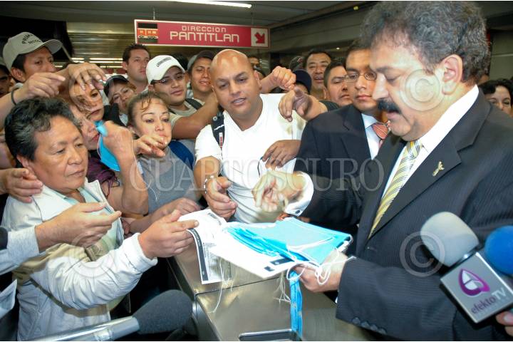 MÉXICO, D.F., 24ABRIL2009.- Una mujer coloca un cubrebocas a un bebé antes de ingresar al Metro para evitar contagiarse de la epidemia de influenza. FOTO: RODOLFO ANGULO/CUARTOSCURO.COM