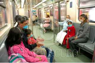 MÉXICO D.F., 26ABRIL2009.- Pasajeros del sistema de tranporte colectivo Metro viajan con cubre bocas debido a la epidema de influenza porcina. FOTO: RODOLFO ANGULO/CUARTOSCURO.COM