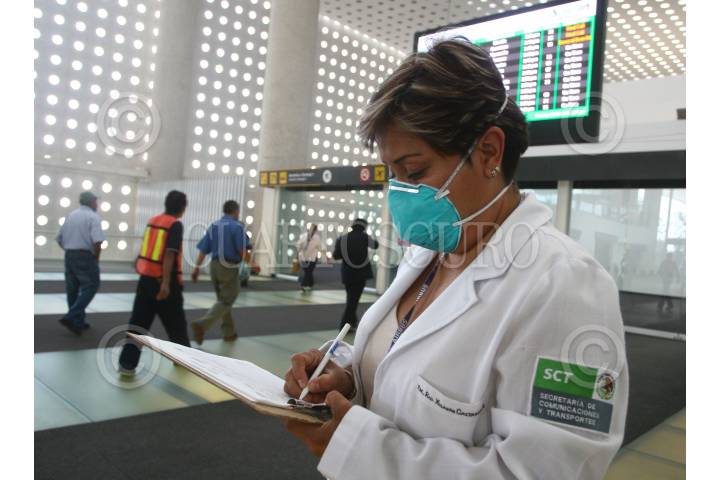 MÉXICO D.F., 26ABRIL2009.- Instalan en el interior del Aeropuerto Internacional de la Ciudad de México modulos con medicos, para valorar a pasajeros que presenten sintomas de la epidemia de influenza porcina. FOTO: SAÚL LÓPEZ/CUARTOSCURO.COM