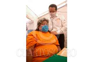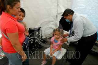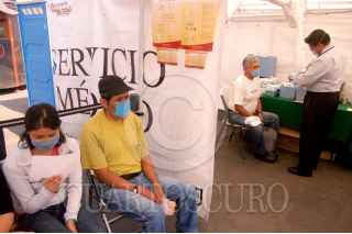 MÉXICO, D.F., 26ABRIL2009.- Un modulo de salud ubicado a un costado de la Catedral Metropolitana atiende y checan a capitalinos como prevención para detectar el virus de la influenza porcina a tiempo FOTO: RICARDO CASTELAN/CUARTOSCURO.COM