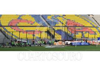 MÉXICO D.F., 26ABRIL2009.- Como medida sanitaria debido al brote de inflenza porcina el encuentro de las Aguilas del America ante Tecos fue a puerta cerrada, solo se le permitió el acceso a los medios de comunicación FOTO: SÁSHENKA GUTIÉRREZ/CUARTOSCURO.COM