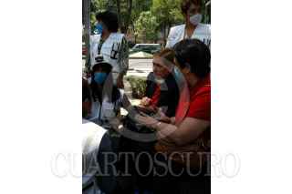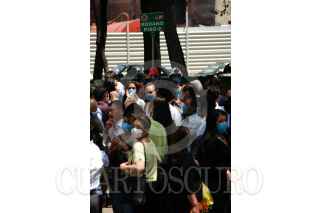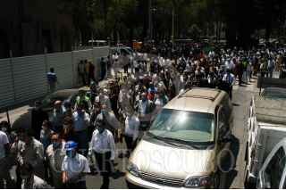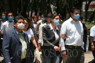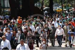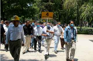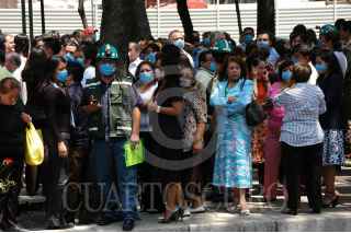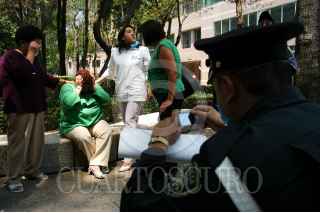 MÉXICO D.F., 27ABRIL2009.- Tras el temblor de 5.7 en la Escala de Richter, la gente que laboraba en los diversos edificios sobre la Avenida Reforma, fueron evacuados por personal de seguridad y apoyado por protección civil, solo se registraron algunas atenciones por crisis menrviosa, sin perdidas humanas hasta el momento. FOTO: RICARDO CASTELAN/CUARTOSCURO.COM