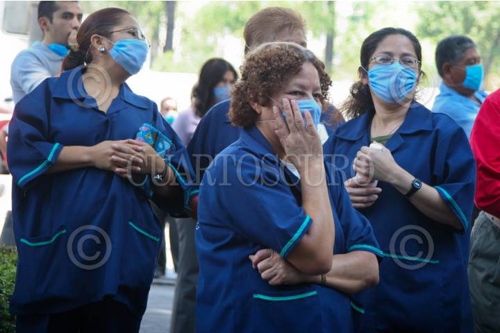 MÉXICO D.F., 27ABRIL2009.- Tras el temblor de 5.7 en la Escala de Richter, la gente que laboraba en los diversos edificios sobre la Avenida Reforma, fueron evacuados por personal de seguridad y apoyado por protección civil, solo se registraron algunas atenciones por crisis menrviosa, sin perdidas humanas hasta el momento. FOTO: RICARDO CASTELAN/CUARTOSCURO.COM