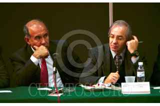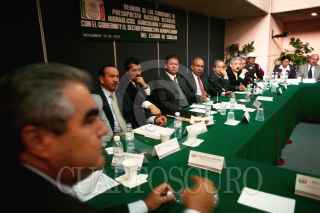 Juan S. Millán, gobernador de Sinaloa y Luis Pazos legislador panista, durante la reunión del primero con las comisiones de Hacienda y de agricultura, de la Cámara de Diputados. FOTO: Victoria Valtierra/CUARTOSCURO.COM
