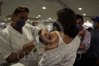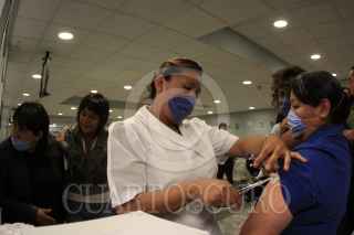 MÉXICO D.F., 27ABRIL2009.- Personal que labora en la clinica infantil ubicado en Av. Politecnico recibe la vacuna Vaxigrip antiinfluenza, cabe mencionar que solo el personal que labora en la clínica es vacunado ya que supuestamente es el que esta en mayor riesgo FOTO: SÁSHENKA GUTIÉRREZ/CUARTOSCURO.COM