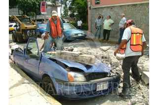ACAPULCO, GUERRERO 27ABRIL2009.- El sismo registrado la tarde de hoy provoco el desprendimiento del techo de un edificio en Acapulco, cayendo encima de un automóvil dejando el perdida total FOTO: MARINO D. VALDEZ/CUARTOSCURO.COM