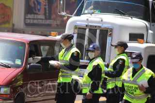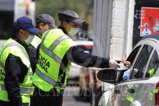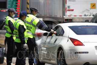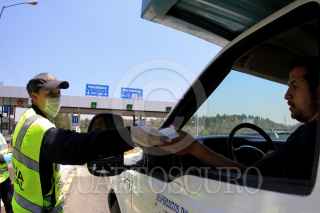 MÉXICO D.F., 28ABRIL2009.- La Policia Federal reparte cubrebocas a los automóvilistas que hacen su arrivo a la caseta México- Cuernavaca todo esto es para evitar cualquier contagio con la epidemia de influenza porcina, misma que ha provocado el fallecimiento de decenas de personas FOTO: SÁSHENKA GUTIÉRREZ/CUARTOSCURO.COM