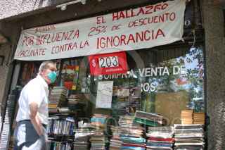 MÉXICO, D.F., 28ABRIL2009.- En esta librería han utilizado la influenza para mejorar sus ventas FOTO: RICARDO CASTELAN/CUARTOSCURO.COM