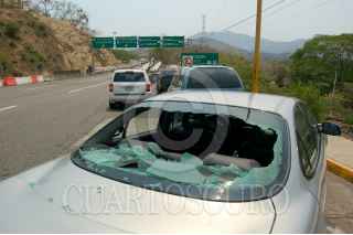 ACAPULCO, GUERRERO, 29ABRIL2009.- Turistas procedentes del Distrito Federal, Chilpancingo y Taxco por la Autopista del sol, a bordo de vehículos particulares y dos camiones de transporte publico fueron agredidos a pedradas por desconocidos cuando se dirigían a este puerto a 15 kilómetros de la caseta de cobro la Venta, dejando a tres personas lesionadas por los vidrios de la unidades informaron los quejosos. Las causas de este hecho se desconocen. FOTO: MARINO D. VALDEZ/CUARTOSCURO.COM