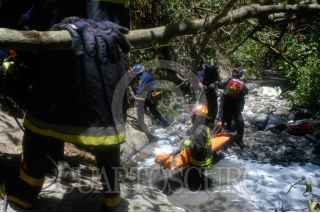 MÉXICO D.F., 29ABRIL2009.- Una persona de 65 años de edad fue encontrada sin vida al interior de una barranca ubicada en la calle 1ra cerrada de Mazatlan y Cañada en la colonia Piloto en la delegación Alvaro Obregón. Bomberos y elementos del ERUM acudieron al lugar para realizar el rescate que duro más de dos horas. FOTO: LUIS CARBAYO/CUARTOSCURO.COM