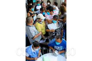 MÉXICO, D.F., 29ABRIL2009.- Un modulo de la llamada caravana de la salud fue ubicado en el estacionamiento de un supermercado, a diez minutos de su llegada decenas de capitalinos hicieron colas y tumulto para ser atendidos y revisados por los doctores, a pesar de que estas caravanas llevan pruebas para detectar influenza de tipo a y b solo son aplicadas a aquellas personas que lleguen con mas de un síntoma o fiebre muy alta, ademas los capitalinos buscan desesperadamente tapabocas que están agotados en estos puestos y en todo el país. FOTO: RICARDO CASTELAN/CUARTOSCURO.COM