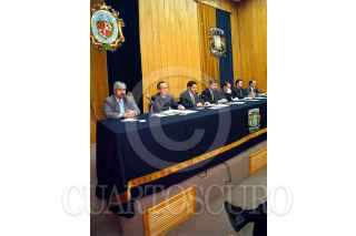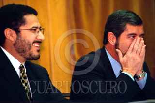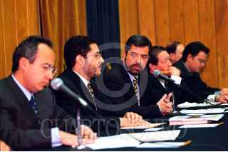 Martí Batres, lider de los perredistas en San Lázaro y el rector de la UNAM, Juan Ramón de la Fuente, esta mañana en el tercer piso de la torre de Rectoría de la máxima casa de estudios. FOTO: Pedro Mera/CUARTOSCURO.COM