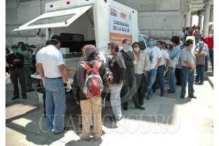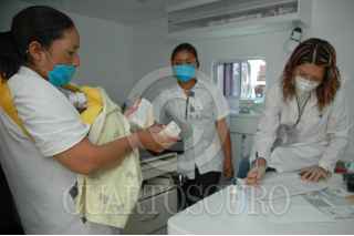 MÉXICO, D.F., 30ABRIL2009.- Una mujer es atendida por medicos dentro de un modulo de salud en donde se atiende a personas con síntomas del virus de la influencia humana AH1N1. FOTO: RODOLFO ANGULO/CUARTOSCURO.COM