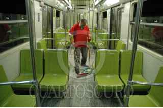 MÉXICO, D.F., 30ABRIL2009.- Un trabajador de limpieza del Sistema de Transporte Colectivo Metro realiza limpieza en un vagón de este transporte, esto como medida para evitar la propagación del virus de la influenza humana AH1N1. FOTO: RODOLFO ANGULO/CUARTOSCURO.COM