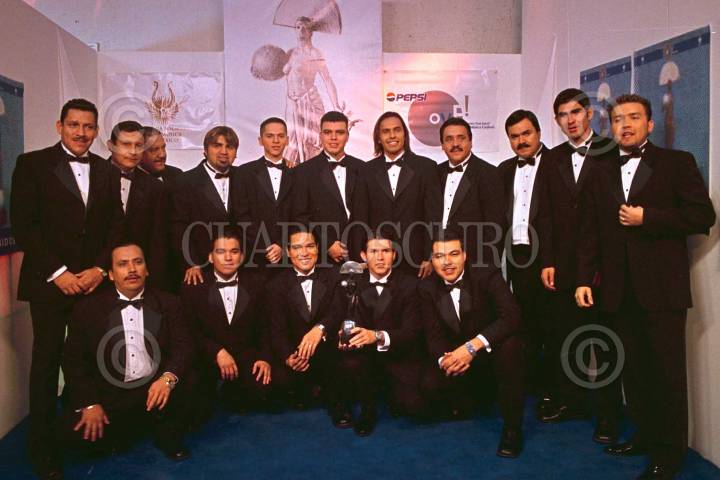 El grupo " Sin Bandera" posa para las fotos, después de ganar el premio Oye! en su primera edición, en la Categoría de Grupo de Rock que otorga la Academia Nacional de la Música en México y CIE, la cual tuvo lugar en el Auditorio Nacional. FOTO: Eunice Adorno/CUARTOSCURO.COM