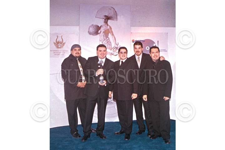 El grupo " Sin Bandera" posa para las fotos, después de ganar el premio Oye! en su primera edición, en la Categoría de Grupo de Rock que otorga la Academia Nacional de la Música en México y CIE, la cual tuvo lugar en el Auditorio Nacional. FOTO: Eunice Adorno/CUARTOSCURO.COM