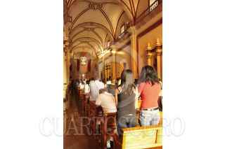 AJIJIC, JALISCO, 01MAYO2009.- El día de ayer feligreses asistieron a misa, este tipo de eventos se han restringido los domingos debido a la influenza humana, y podrán escucharse por la radio. Para evitar cualquier contagio de esta epidemia. FOTO: MARIA DI PAOLA BLUM/CUARTOSCURO.COM