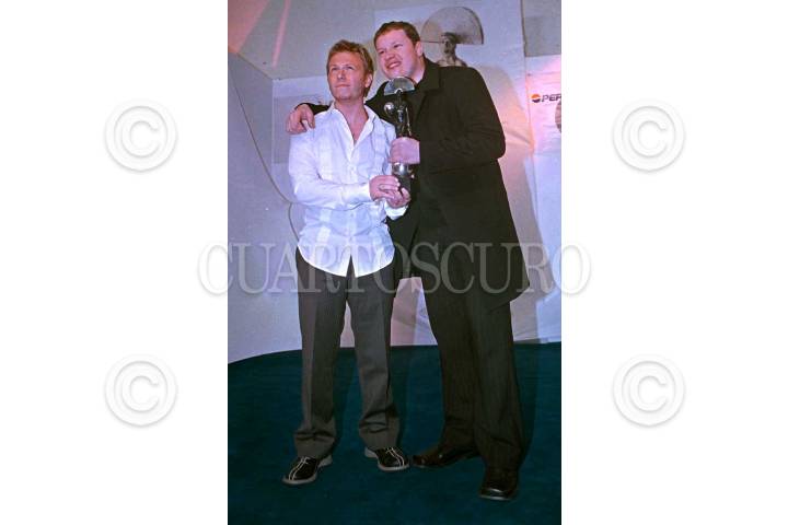 El grupo " Sin Bandera" posa para las fotos, después de ganar el premio Oye! en su primera edición, en la Categoría de Grupo de Rock que otorga la Academia Nacional de la Música en México y CIE, la cual tuvo lugar en el Auditorio Nacional. FOTO: Eunice Adorno/CUARTOSCURO.COM