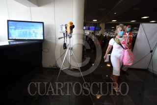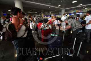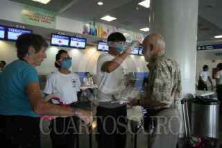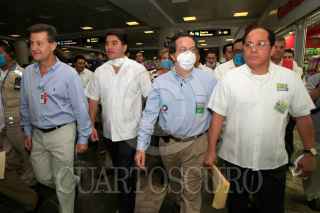 CANCÚN, QUINTANA ROO, 01MAYO2009.- Gabriel Gurmendez, director de ASUR; Felix Gónzales Canto, gobernador de Quintana Roo; Juan Molinar Horcasitas, titular de SCT, e Ignacio Meza Echeavarría, director General del Centro SCT Quintana Roo, durante un recorrido por el aeropuerto internacional de Cancún. FOTO: AMARANTA PRIETO7CUARTOSCURO.COM