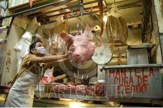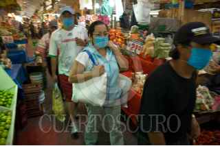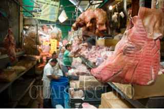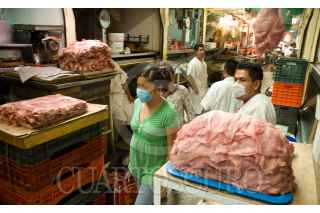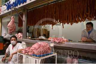MÉXICO, D.F., 01MAYO2009.- Los puestos en donde se vende carne de cerdo dentro de un mercado de la ciudad luce vació ya que las ventas de este tipo de carne han estado a la baja en estos días de contingencia por el virus de la influencia porcina. Las autoridades mexicanas aclaran que el consumo de carne de puerco no contagia el virus de la influenza humana AH1N1. FOTO: RODOLFO ANGULO/CUARTOSCURO.COM