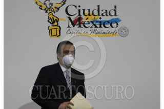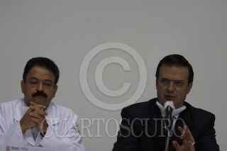 MÉXICO D.F., 02 MAYO2009.- Marcelo Ebrard jefe de gobierno del Distrito Federal en conferencia conjunta, el secretario de Salud del Distrito Federal, Armando Ahued donde dieron el informe de acciones realizadas por el gobierno capitalino ante la alerta epidemiológica que vive la Ciudad de México FOTO: SÁSHENKA GUTIÉRREZ/CUARTOSCURO.COM