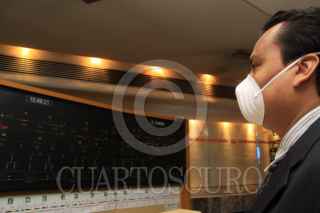 MÉXICO D.F., 02 MAYO2009.- Marcelo Ebrard jefe de gobierno del Distrito Federal puso en marcha el sistema de pruebas con cámaras termográficas a los usuarios del Metro, a fin de detectar a personas que tengan una temperatura superior a los 37.5 grados y, de corresponder con síntomas de influenza, canalizarlos a un hospital. FOTO: SÁSHENKA GUTIÉRREZ/CUARTOSCURO.COM