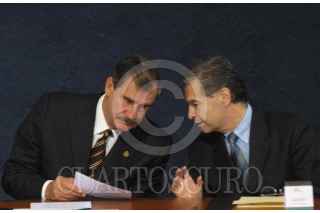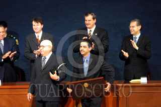 Vicente Fox Quesada, presidente de México, junto con Luis Ernesto Derbez, secretario de Economia, entregaron el Premio Nacional de Exportación 2002, en la residencia oficial de Los Pinos. FOTO: Antonio García/CUARTOSCURO.COM