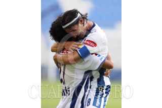 PACHUCA, HIDALGO, 02MAYO2009.- Gabriel Caballero de los tuzos del Pachuca festeja su gol en el partido que en contra de los jaguares de Chiapas, ganando los tuzos 5 goles a 1, en partido de la jornada 16 que se realizo en el estadio Hidalgo. FOTO: DAVID MARTINEZ PELCASTRE/CUARTOSCURO.COM