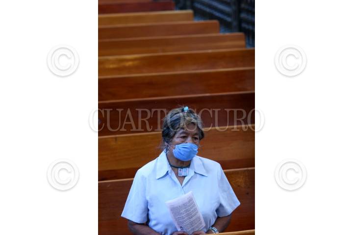 MÉXICO, D.F., 03MAYO2009.- En la Catedral Metropolitana se realizo la misa dominical donde nuevamente la ceremonia se llevo a puerta cerrada, hoy día de la santa cruz muy pocos files pudieron bendecir sus cruces ya que la alerta sanitaria en la capital a un no termia. FOTO: RICARDO CASTELAN/CUARTOSCURO.COM