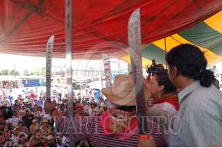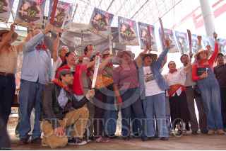 SAN SALVADOR ATENCO, ESTADO DE MÉXICO, 03MAYO2009.- Personajes públicos, entre ellos, David Giménez Cacho, Julieta Egurrola y Bruno Bichir se unieron a el Frente de Pueblos en Defensa de la Tierra (FPDT), quienes realizaron un mitin para conmemorar tres años de los enfrentamientos de la policía hacia comuneros de esta zona del estado. FOTO: ADRIANA ALVAREZ/CUARTOSCURO.COM
