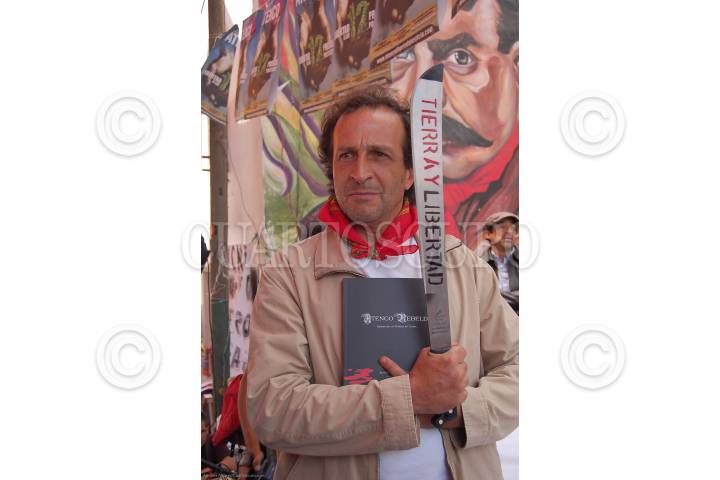 SAN SALVADOR ATENCO, ESTADO DE MÉXICO, 03MAYO2009.- Personajes públicos, entre ellos, David Giménez Cacho, Julieta Egurrola y Bruno Bichir se unieron a el Frente de Pueblos en Defensa de la Tierra (FPDT), quienes realizaron un mitin para conmemorar tres años de los enfrentamientos de la policía hacia comuneros de esta zona del estado. FOTO: ADRIANA ALVAREZ/CUARTOSCURO.COM