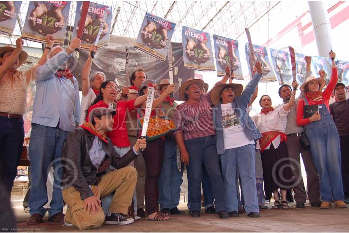 SAN SALVADOR ATENCO, ESTADO DE MÉXICO, 03MAYO2009.- Personajes públicos, entre ellos, David Giménez Cacho, Julieta Egurrola y Bruno Bichir se unieron a el Frente de Pueblos en Defensa de la Tierra (FPDT), quienes realizaron un mitin para conmemorar tres años de los enfrentamientos de la policía hacia comuneros de esta zona del estado. FOTO: ADRIANA ALVAREZ/CUARTOSCURO.COM