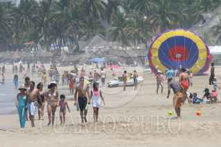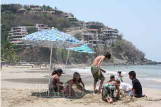 IXTAPA, ZIHUATANEJO 03MAYO2009.- A pesar de la alerta sanitaria decretada por el Gobierno de la República en todo el país, miles de turistas nacionales abarrotaron las playas de Ixtapa que alcanzó una ocupación hotelera, ayer, del 80.7 por ciento. En Zihuatanejo se tiene un reporte de ocupación del 53.2 por ciento y las autoridades sanitarias no reportan ningún caso de influenza. FOTOS: CHUY MEZA/CUARTOSCURO.COM