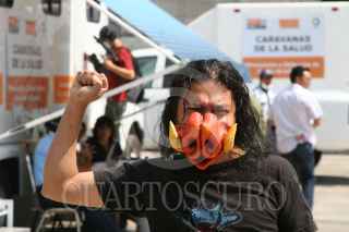 MÉXICO, D.F., 04MAYO2009.- Hoy se cumplen 10 días de la alerta sanitaria en la ciudad de México por el virus de la influenza humana, personas que viajan en el metro usan tapabocas para evitar el contagio de este virus. FOTO: RICARDO CASTELAN/CUARTOSCURO