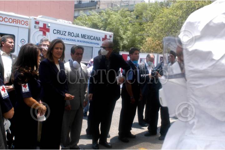 MÉXICO, D.F., 04MAYO2009.- Margarita Zavala de Calderon, recibió de parte del embajador de España, Carmelo Angulo, la donación que realizó el país ibérico a la Cruz-Roja mexicana, el cual consiste en equipo de protección para la prevención del contagio a personal paramedico y tratamiento seguro de pacientes infectados. En la entrega también estuvo presente el Dr. Daniel Goñi Díaz, director de la Cruz Roja. FOTO: LUIS CARBAYO/CUARTOSCURO.COM