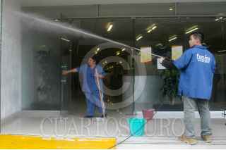 MÉXICO, D.F., 04MAYO2009.- Personal de una empresa de Limpieza y Fumigación realizan estas tareas en las oficinas generales de la Procuraduria Capitalina que se ubican en Dr Vertiz y Dr. Rio de la Loza en la colonia Doctores. FOTO: LUIS CARBAYO/CUARTOSCURO.COM