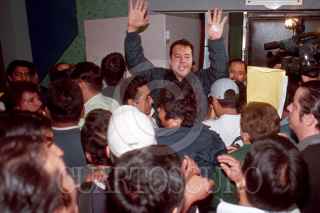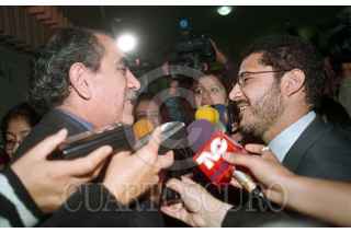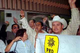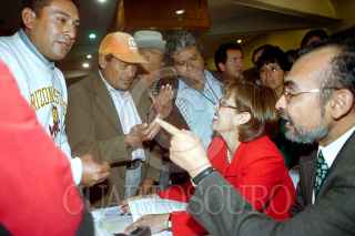 Perredistas de Ecatepec, nuevamente, encararon a la dirigente del PRD, Rosario Robles, la cual no podía dar inicio a su discurso por de negociar con las bases mexiquenses de este partido. FOTO: Victoria Valtierra/CUARTOSCURO.COM