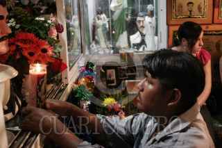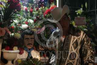 CULIACÁN, SINALOA 04 DE MAYO DEL 2009.- El festejo de Jesús Malverde se pospuso para el 17 de mayo, pese a ello sus seguidores acuden a la capilla. FOTO: IVAN STEPHENS/CUARTOSCURO.COM