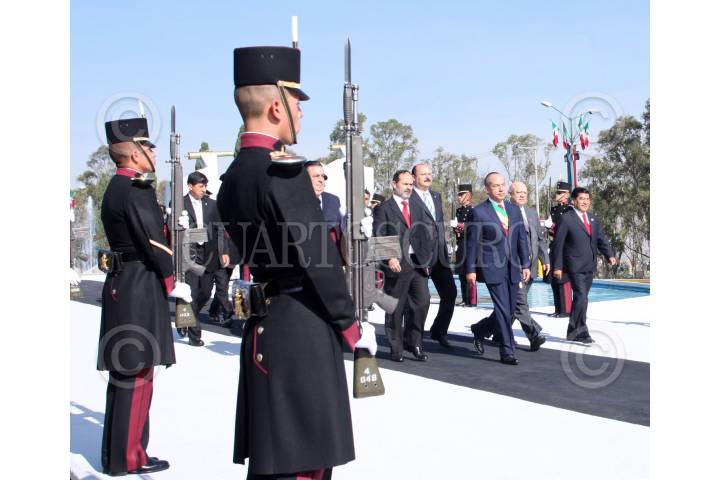 PUEBLA, PUEBLA, 05MAYO2009.- Felipe Calderón Hinojosa, Presidente de México, durante la ceremonia conmemorativa del CXLVII Aniversario de la Batalla de Puebla. FOTO: ALFREDO GUERRERO/CUARTOSCURO.COM