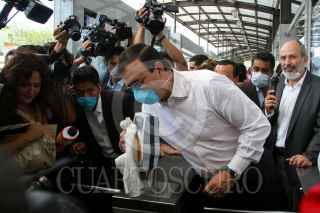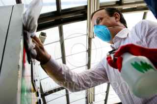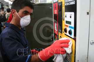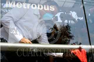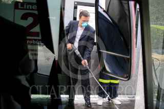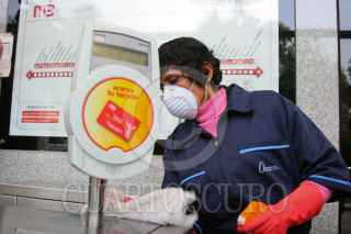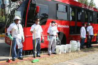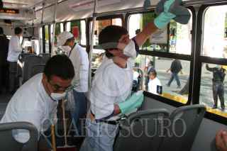 MÉXICO, D.F., 05MAYO2009.- Marcelo Ebrard Casaubon jefe de gobierno del Distrito Federal, inicio la limpieza profunda del Metrobús, esta limpieza se realizara cada 2 horas, se hará desinfección de pasamanos en las 221 unidades del Metrobús. FOTO: RICARDO CASTELAN/CUARTOSCURO.COM