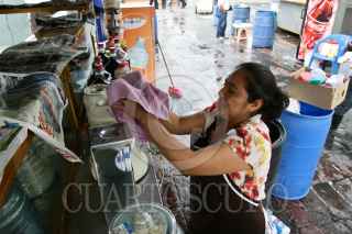 MÉXICO, D.F., 05MAYO2009.- Comerciantes de la ciudad de México limpian sus locales de comida para reiniciar sus ventas a partir de mañana miércoles, luego de que permanecieron cerrados desde la semana pasada debido a la epidemia de influenza que afecta al país. FOTO: ISAAC ESQUIVEL/CUARTOSCURO.COM