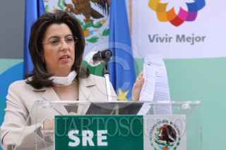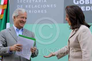 MÉXICO, D.F., 06MAYO2009.- Lourdes Aranda, subsecretaría de relaciones exteriores, ofreció una conferencia de prensa con el embajador francés, para agradecer la ayuda humanitaria que aquel gobierno le brindó a nuestro país en apoyo al combate de la epidemia de la influenza humana que padece el país. FOTO: MOISÉS PABLO/CUARTOSCURO.COM