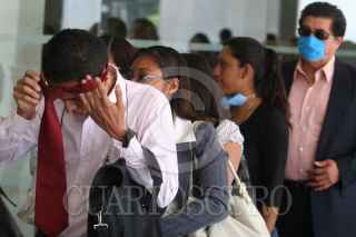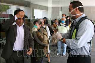 MÉXICO, .D.F,. 06MAYO2009.- En los tribunales de justicia, oficinas de gobierno y secretarias, las medidas de prevención contra el contagio de la influenza fueron muy rigurosas lo que provoco grandes filas de todas aquellas personas que quisieran ingresar a estos lugares, otra de las prevenciones es que queda prohibido el uso de corbatas ya que representan un nido para la incubación del virus de la influenza humana. FOTO: RICARDO CASTELAN/CUARTOSCURO.COM